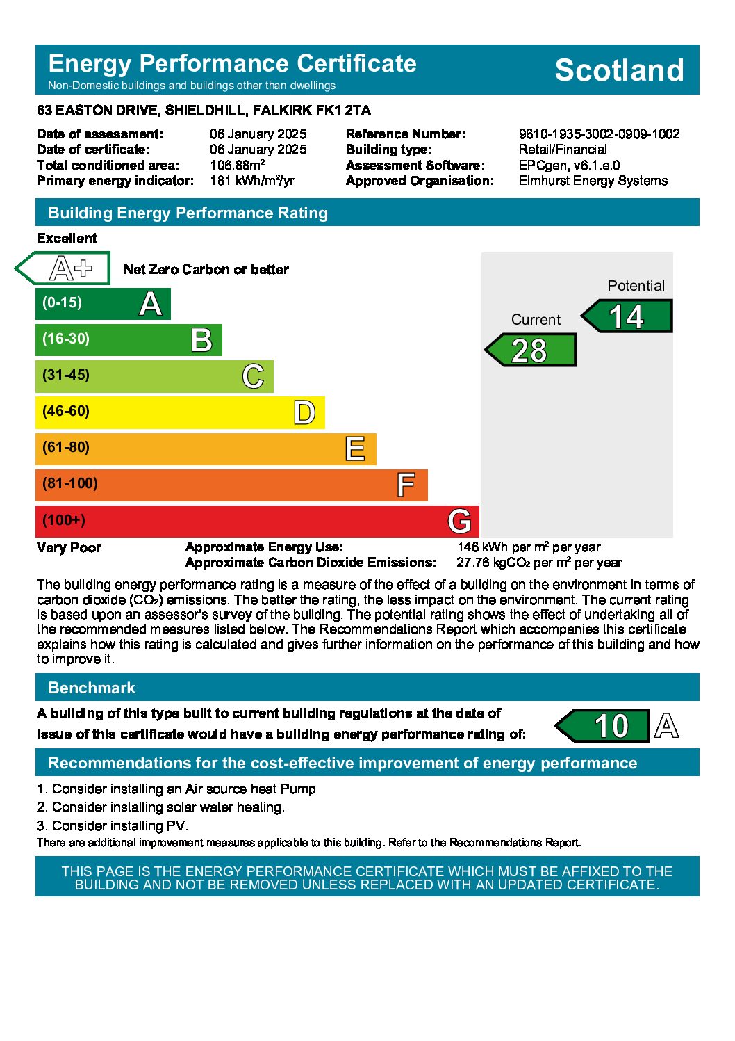 This commercial building could be an excellent development opportunity for any interested party. With the correct planning permission, the new owner could convert the building to a residential building. The building could be converted into a substantially large bungalow or two smaller bungalows. It is located in the popular residential area of Easton Drive in Shieldhill within a mix of modern detached villas.