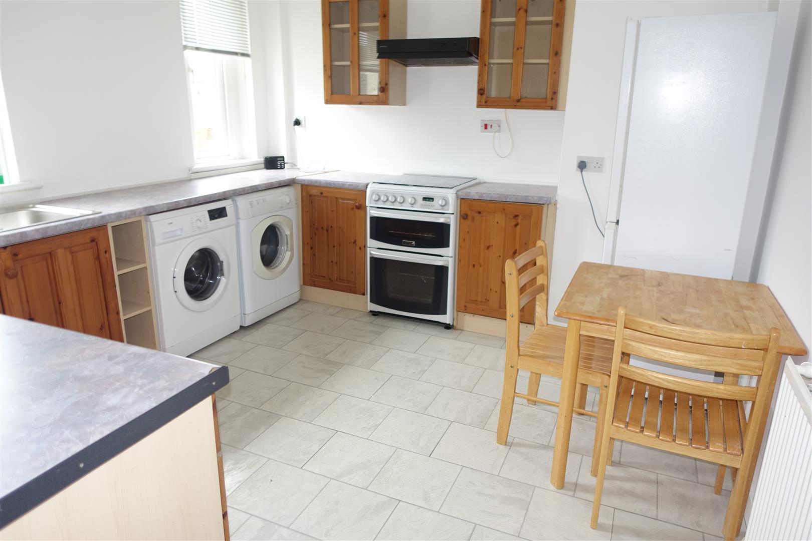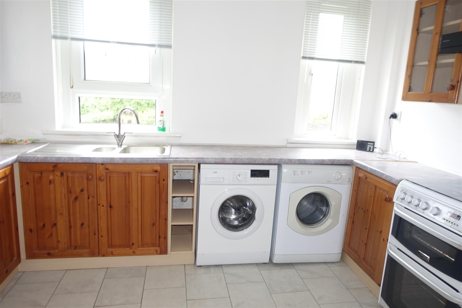 The fitted kitchen offers ample base and wall units, complementary worktops, and an electric cooker. All white goods are included in the sale, making this a convenient option for first-time buyers. The family bathroom is fitted with a three-piece suite and a shower over the bath.